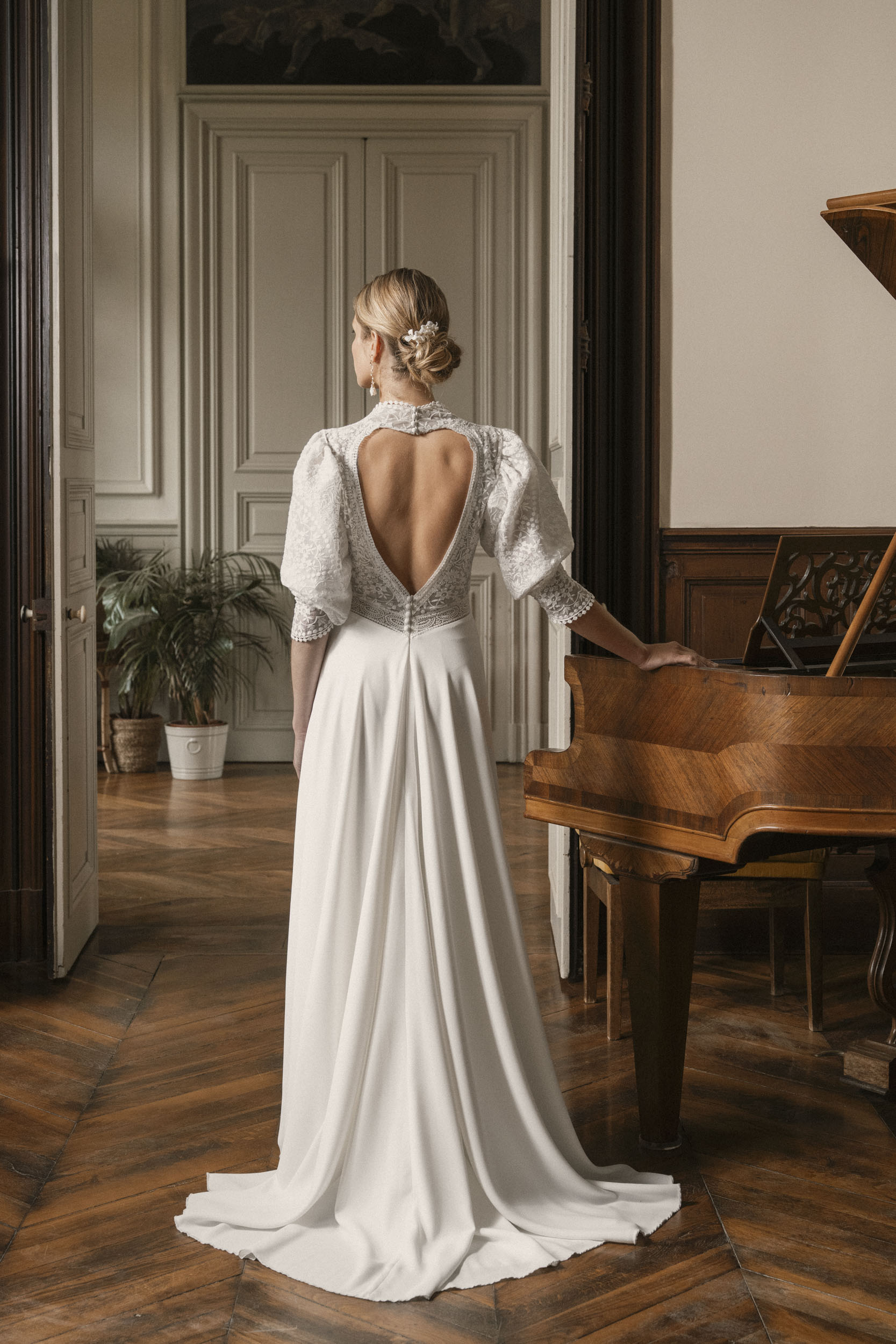 Agatha est une robe de mariée pensée pour les femmes libres et rêveuses, elle épouse les formes sans jamais les contraindre.