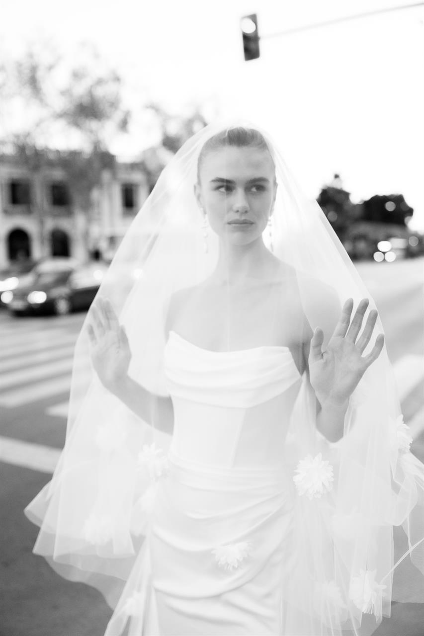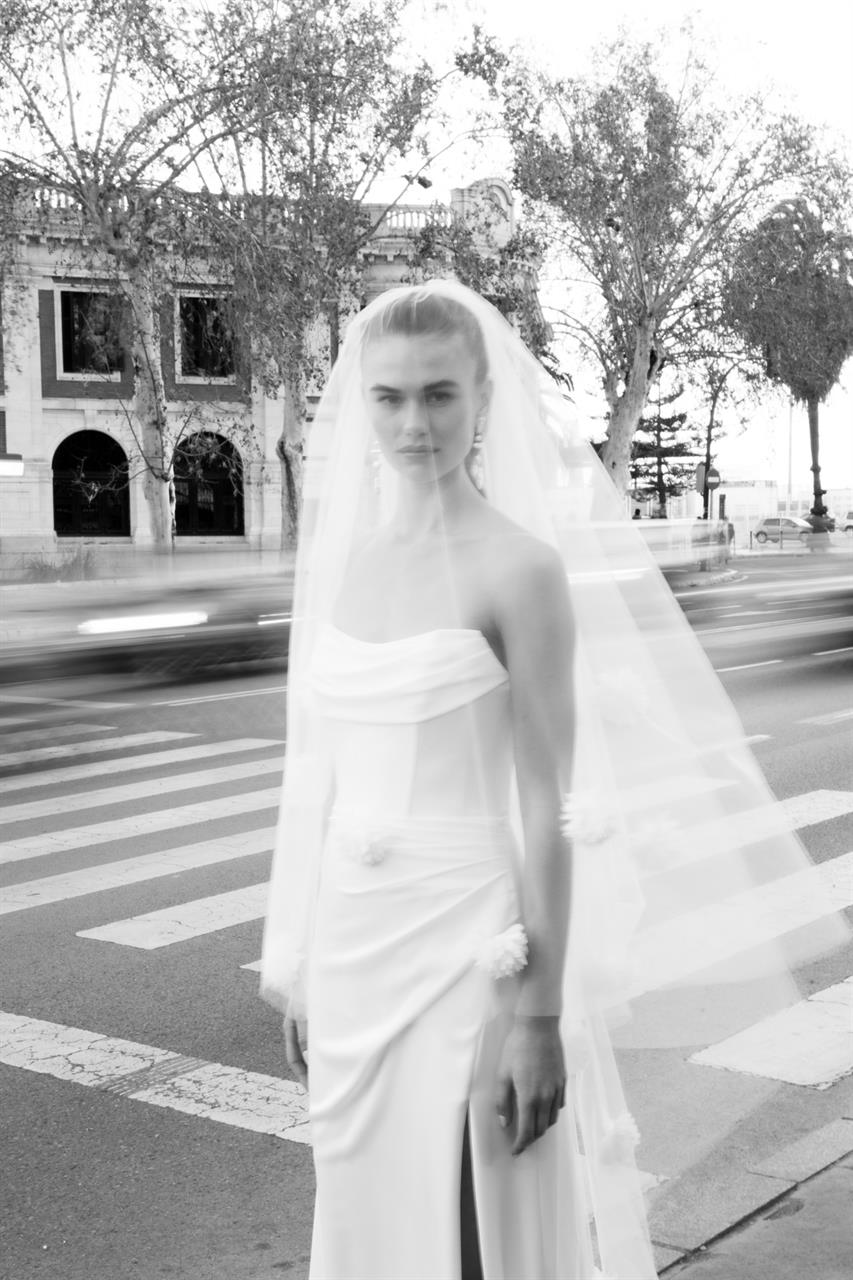 My heart will go on a l’élégance minimaliste! Sa silhouette affinée par un drapé flatteur et une fente sensuelle,  se termine par une traîne. Le corsage en satin est structuré par un décolleté en cÅ“ur sans bretelles.