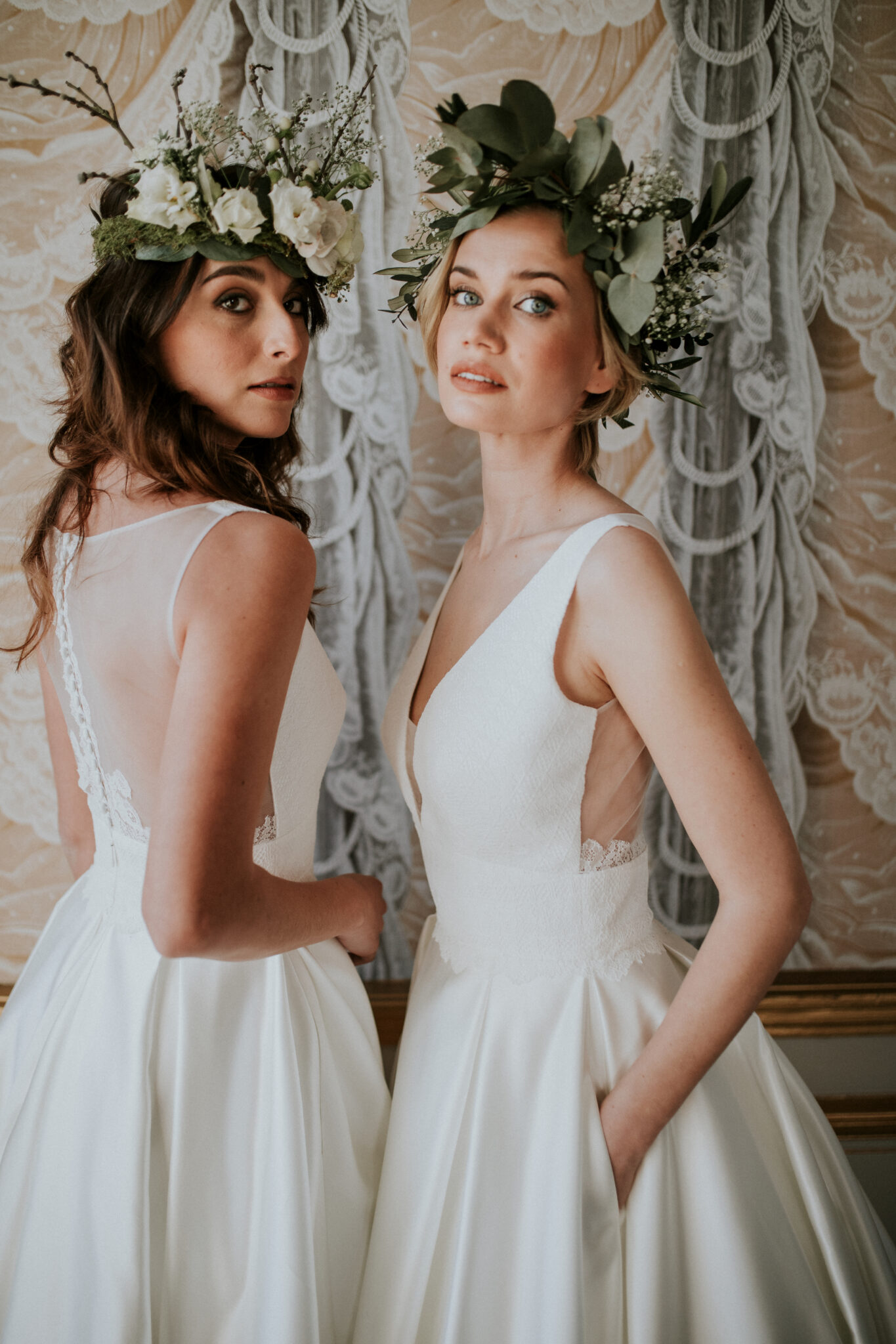 La robe Or est une tenue courte, avec un corsage en dentelle qui présente un décolleté en V à l’avant et un dos en tulle fermé avec des incrustations. La jupe courte est élégamment plissée et agrémentée de poches.